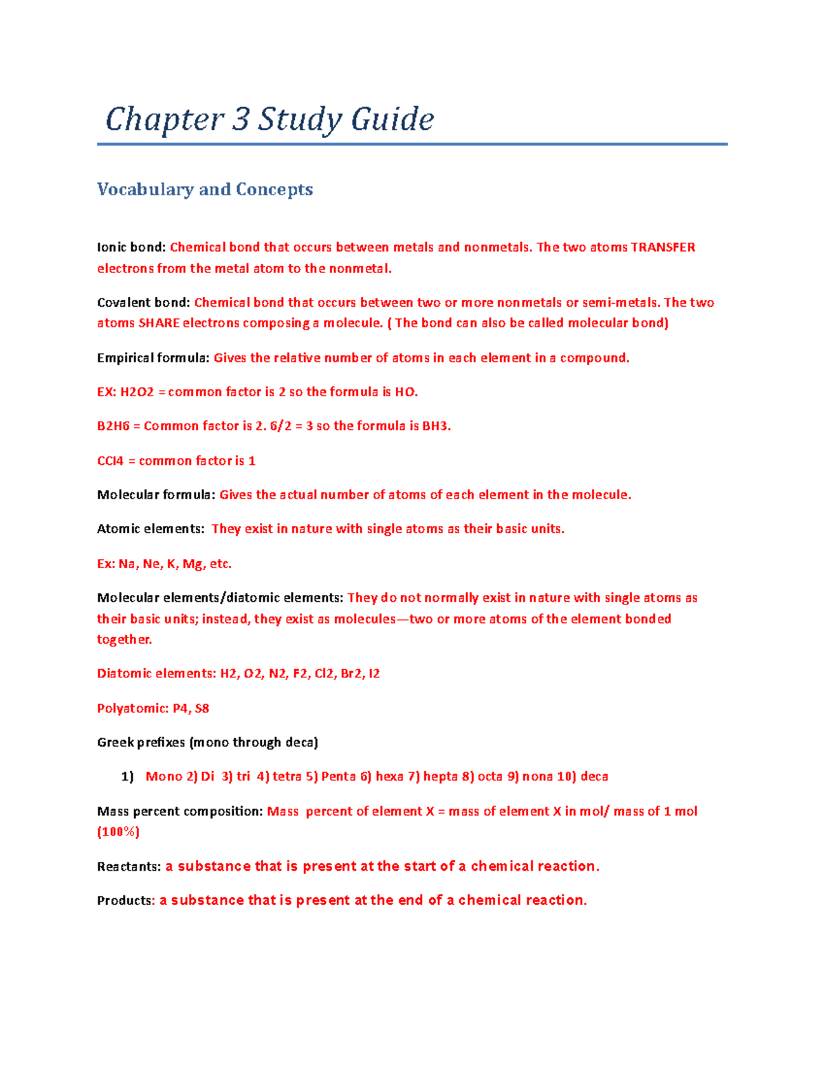 Chapter 3 Study Guide Chapter 3 Study Guide Vocabulary And Concepts Ionic Bond Chemical Bond That Studocu